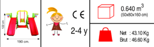 The Slide and Swing Set C is designed for safe and enjoyable play, allowing more than one child to have a pleasant time together. This product is suitable for both indoor and outdoor use, making it a versatile addition to any play space.